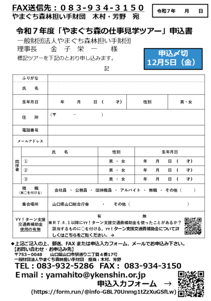 「やまぐち森の仕事見学ツアー」の参加者募集について